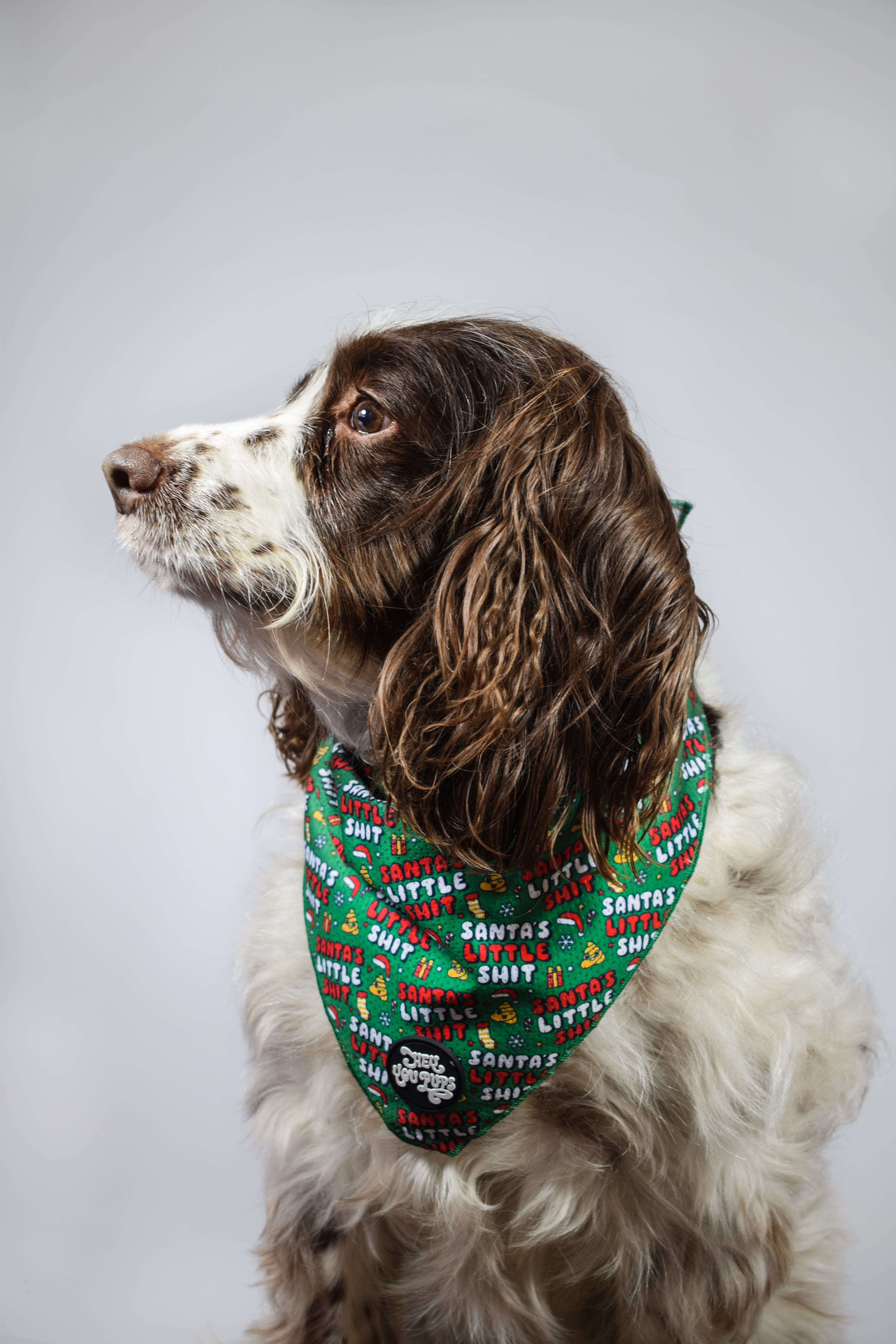 Feeling festive? Show off this cheeky Christmas bandana around your dogs current collar or harness on a festive dog walk or pop it in as a stocking filler for a friend!