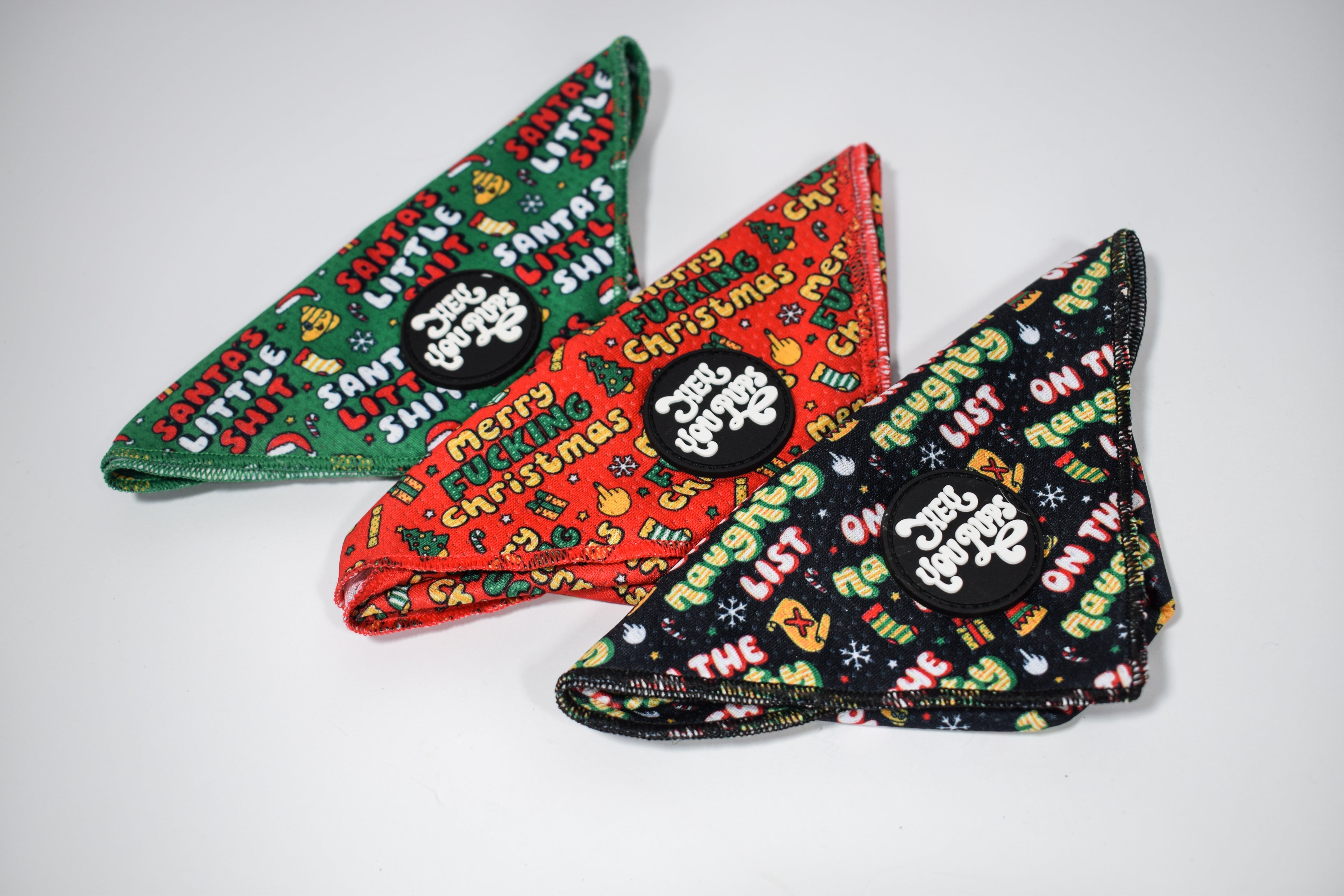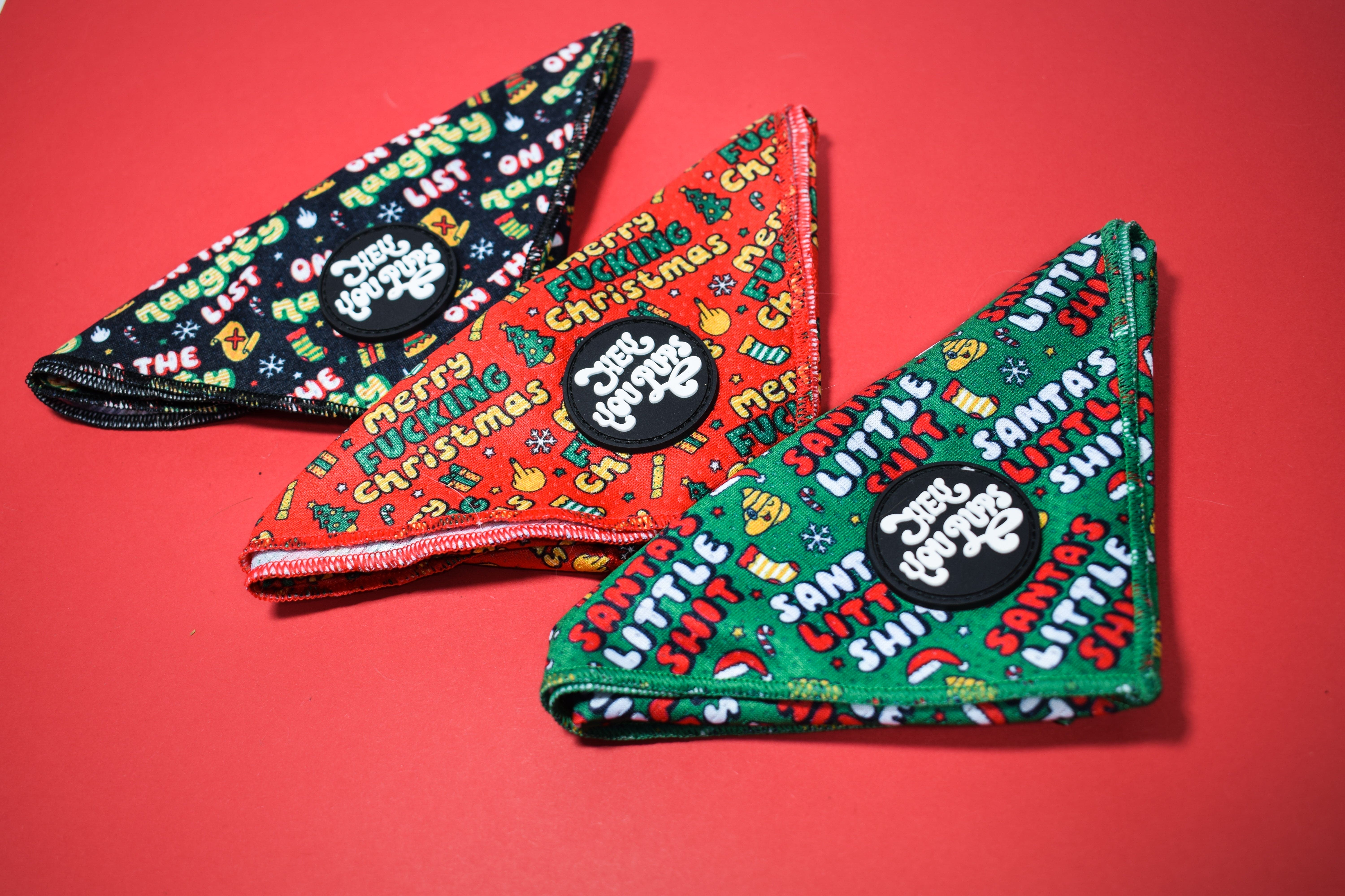 We have 3 limited edition Christmas bandanas, check out our bundle offer also!